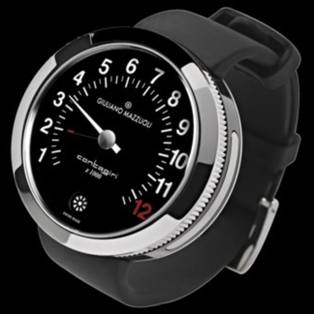ワンハンド(1本針)が非常に特徴的な時計。Alfa Romeo GTAのタコメータに着想を得たとされている、車好き垂涎の一本。