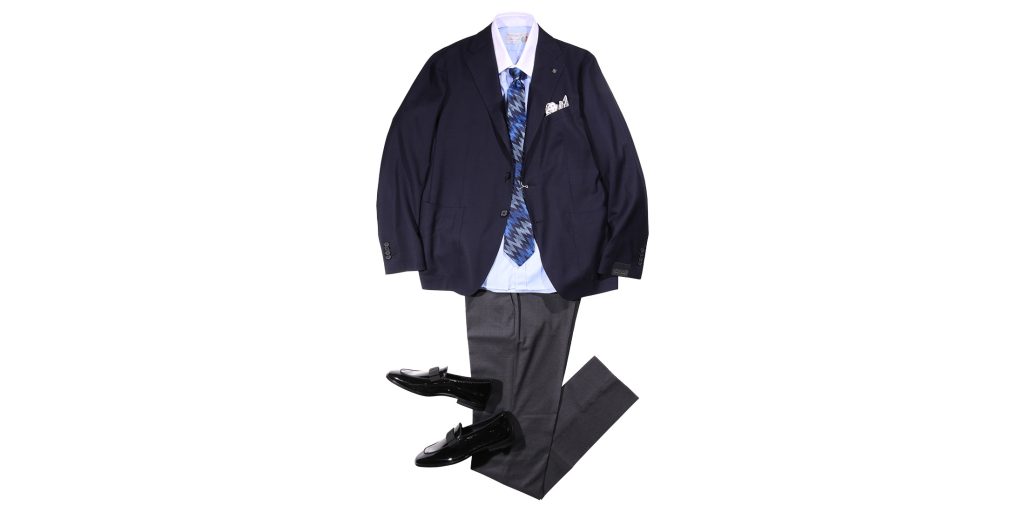 ジャケット TAGLIATORE ¥103,400 ポケットチーフ BRUNELLO CUCINELLI ¥30,030 ネクタイ MISSONI ¥33,550 シャツ POGGIANTI 1958 ¥32,450 パンツ PT TORINO ¥41,800 シューズ TAGLIATORE ¥45,100 軽快な素材感が特徴で、堅苦しさを感じさせない柔らかな着心... -