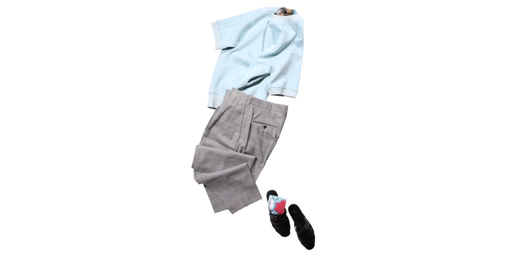 ネッカチーフ POGGIANTI 1958 ¥17,930 半袖スウェット PT TORINO ¥40,700 パンツ PT TORINO ¥43,780 ソックス alto milano ¥3,850 グルカサンダル Castaner ¥31,350 トップスの半袖スウェット、ボトムスの計算されたシルエットが美しいワイドパンツは、共... -