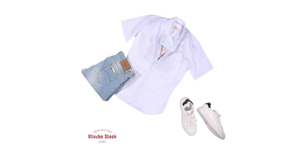 シャツ POGGIANTI 1958 ¥26,950 Tシャツ Saint Barth ¥19,030 ジーンズ LUIGI BORRELLI ¥37,400 スニーカー PAOLO PECORA ¥23,430 夏を連想させるプリントTと淡い色合わせ。<POGGIANTI 1958>の半袖シャツのボタンを開けて微かに覗く夏の光景が、暑い夏に... -
