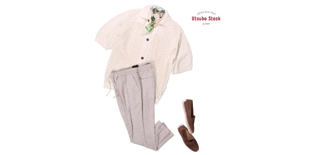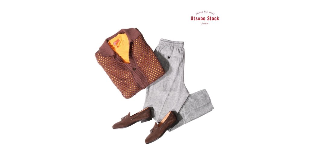 カーディガン I'M BRIAN ¥31,350 ニットTシャツ DANIELE FIESOLI ¥26,950 パンツ ANTONY MORATO ¥28,050 シューズ Ortigni ¥48,400 オレンジカラーのパイルTシャツが映えるスタイリング。 見た目も着心地も軽やかなメッシュ素材で、落ち着きのあるブラウン... -