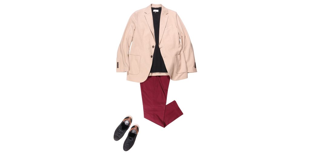 ジャケット CIRCOLO 1901 ¥75,900 ニットTシャツ FILIPPO DE LAURENTIIS ¥29,150 パンツ PT TORINO ¥42,900 スニーカー TAGLIATORE ¥45,980 ベージュの持つナチュラルな印象に対し、ボルドーがスタイリング全体を引き締める役割を担い、シンプルながらも印... -