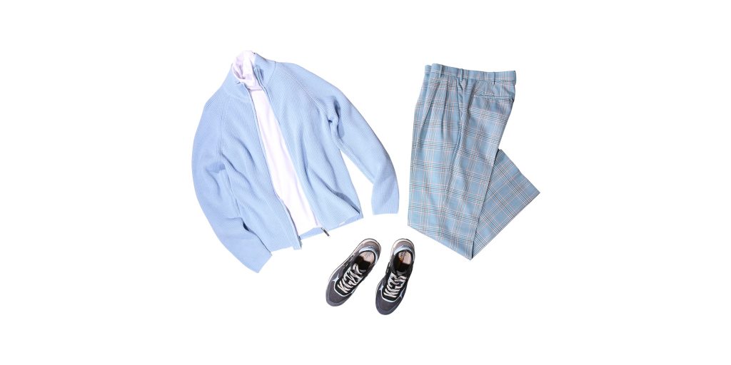 ジップアップニットブルゾン DANIELE FIESOLI ¥33,550 コットンタートルネック R3D WOOD ¥20,130 パンツ PT TORINO ¥42,900 スニーカー Atlantic STARS ¥37,400 ライトブルーが軸となった爽やかなカジュアルスタイル。 羽織るだけでスタイリング全体に清涼...