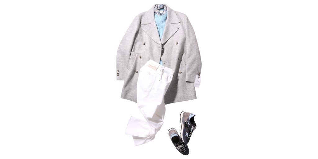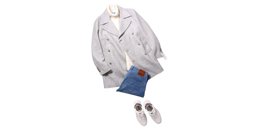 コート EREDI DEL DUCA ¥64,900 タートルネックニット TAGLIATORE ¥41,580 ジーンズ TRAMARROSA ¥56,100 スニーカー Atlantic STARS ¥40,700 <EREDI DEL DUCA>のライトグレーコートは、このスタイリングの核となる存在です。冬の街並みに自然と溶け込む... -