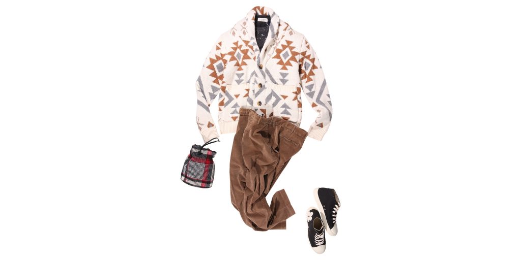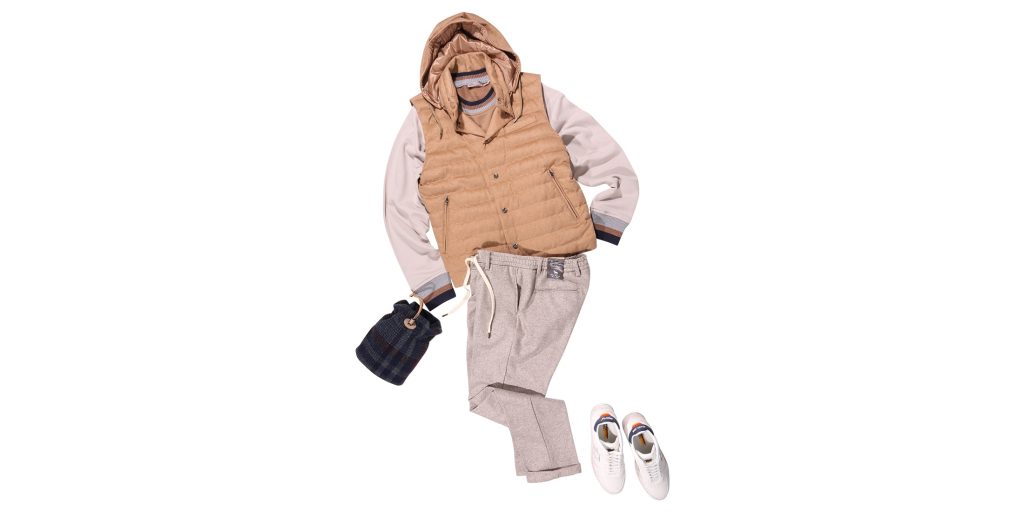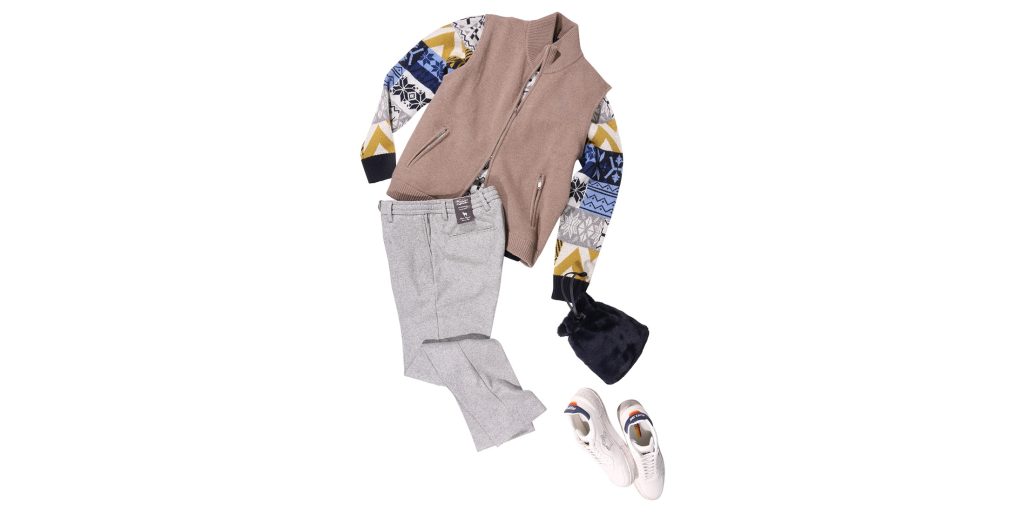 ニットベスト DANIELE FIESOLI ¥99,000 クルーネックニット +39 masq ¥37,400 パンツ B SETTECENTO ¥42,900 スニーカー Atlantic STARS ¥40,700 バッグ Felisi ¥29,150 <DANIELE FIESOLI>の上質なニットベストと、<+39 masq>の柄物ニットをレイヤード... -