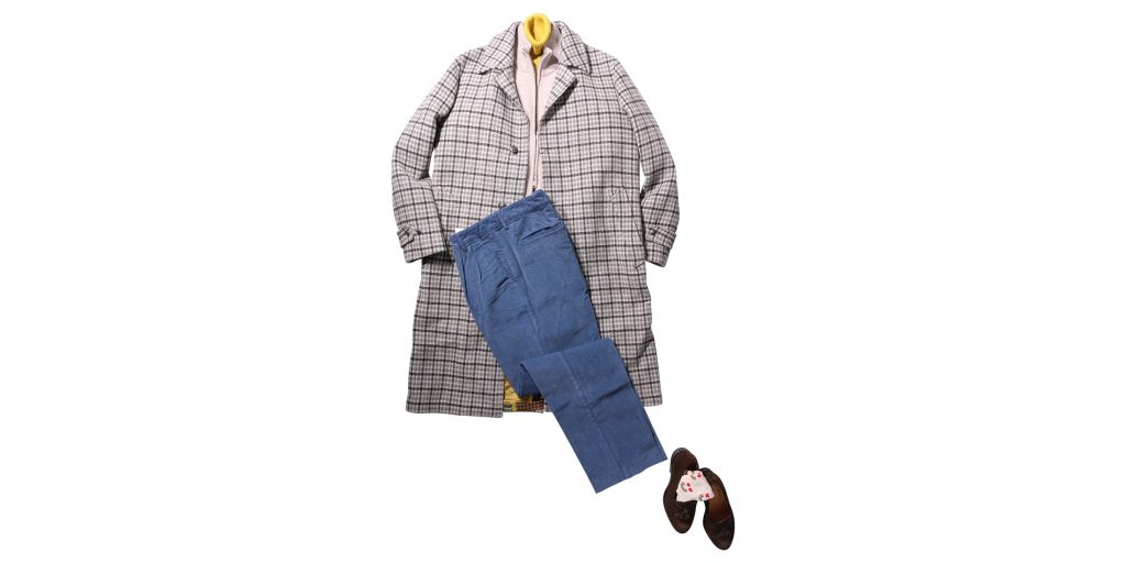 コート ETRO ¥213,400 ニットベスト DANIELE FIESOLI ¥99,000 タートルネックニット ne pas ¥24,750 パンツ PT TORINO ¥42,900 ソックス Happy Socks ¥2,970 シューズ Ortigni ¥48,400 イエロー×ブルーの色のコントラストを愉しみたいコートスタイル。 <E... -