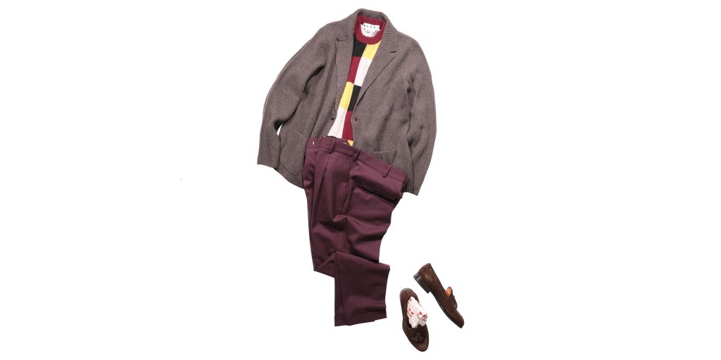 ニットジャケット LAMANO ARTISANS ¥91,300 クルーネックニット MARNI ¥61,600 パンツ PT TORINO ¥44,000 ソックス Happy Socks ¥2,970 シューズ Ortigni ¥48,400 落ち着いた色合わせの中に、ポップな配色でデザイン性に優れた<MARNI >のニットを差... -