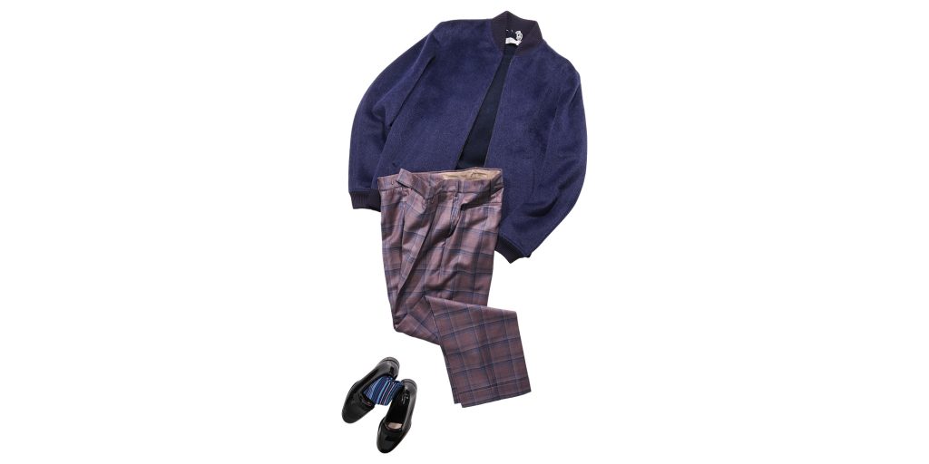 ブルゾン ETRO ¥157,300 クルーネックニット LAMANO ARTISANS ¥102,300 パンツ PT TORINO ¥42,900 ソックス ALTO MILANO ¥3,850 シューズ TAGLIATORE ¥45,100 <ETRO>の立体的な表情のブルゾンをまとったカジュアルスタイル。 艶やかなルックスということ... -