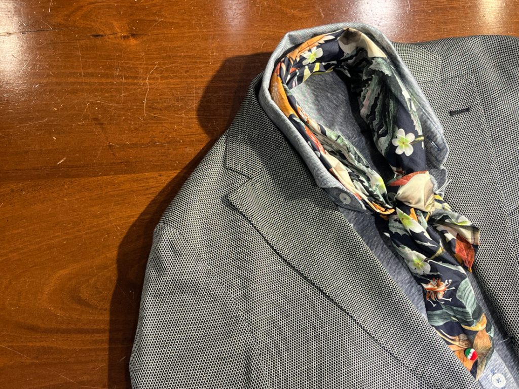 2025年7月26日放送【痛快!明石家電視台(毎日放送)】にご出演の間寛平さんに、Utsubo Stockより衣装提供させていただきました。 ネッカチーフ POGGIANTI 1958 ジャケット ETRO シャツ andre maurice 落ち着いたグレーのジャケットをベースに、首元には色... -